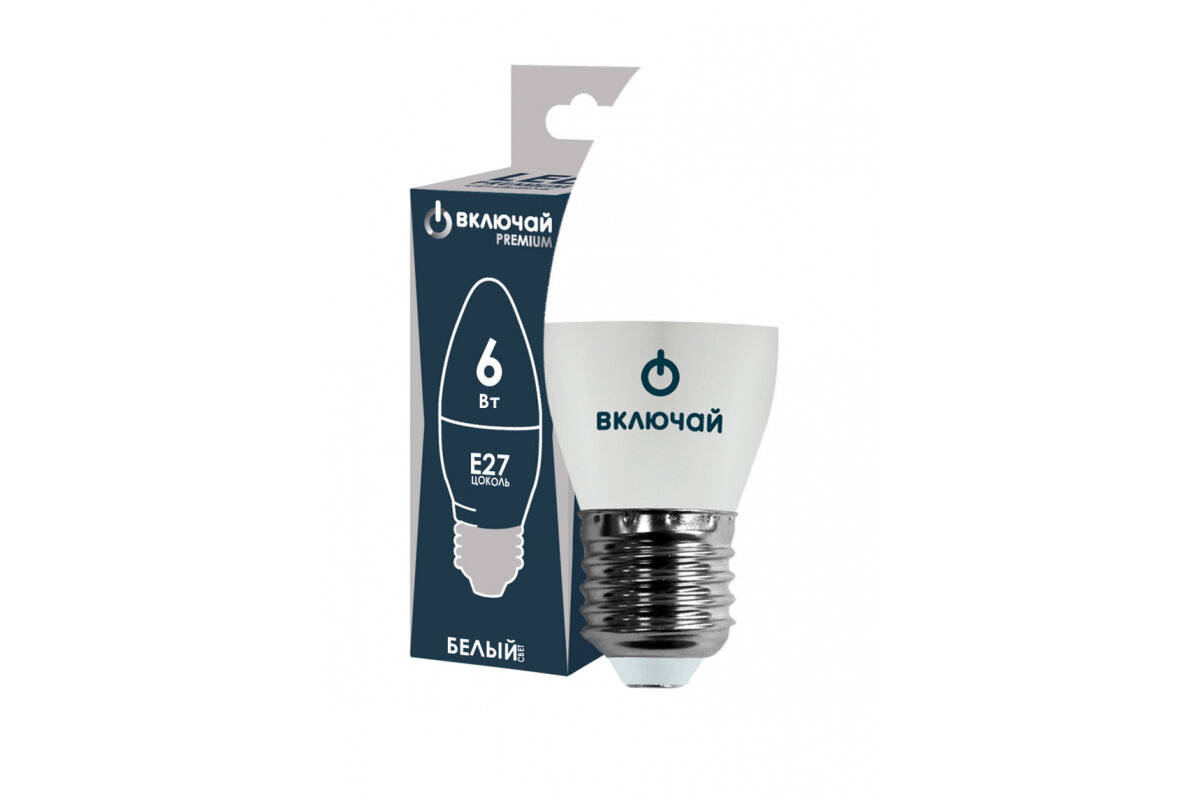 Отзывы на Светодиодная лампа Включай 6W E27 свеча 4000K 220V LED PREMIUM C37-6W-E27-W 1003874