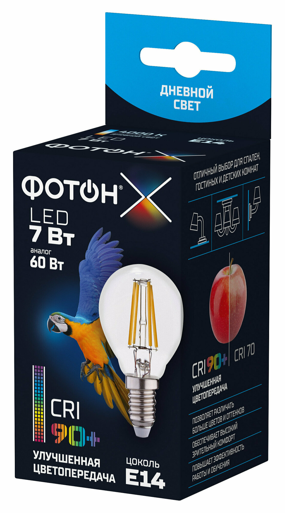 Лампа светодиодная фотон LED FL P45-C 7Вт E14 4000K, серия Х информация: