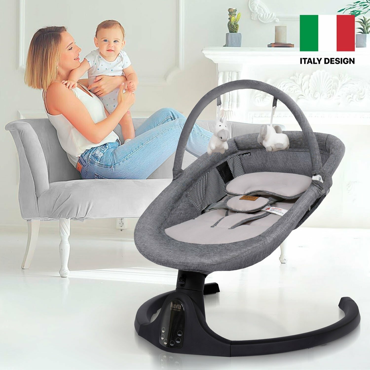 Электрокачели для новорожденного кресло качалка новогодние подарки, для малыша до 12 кг, с пультом управления, серый