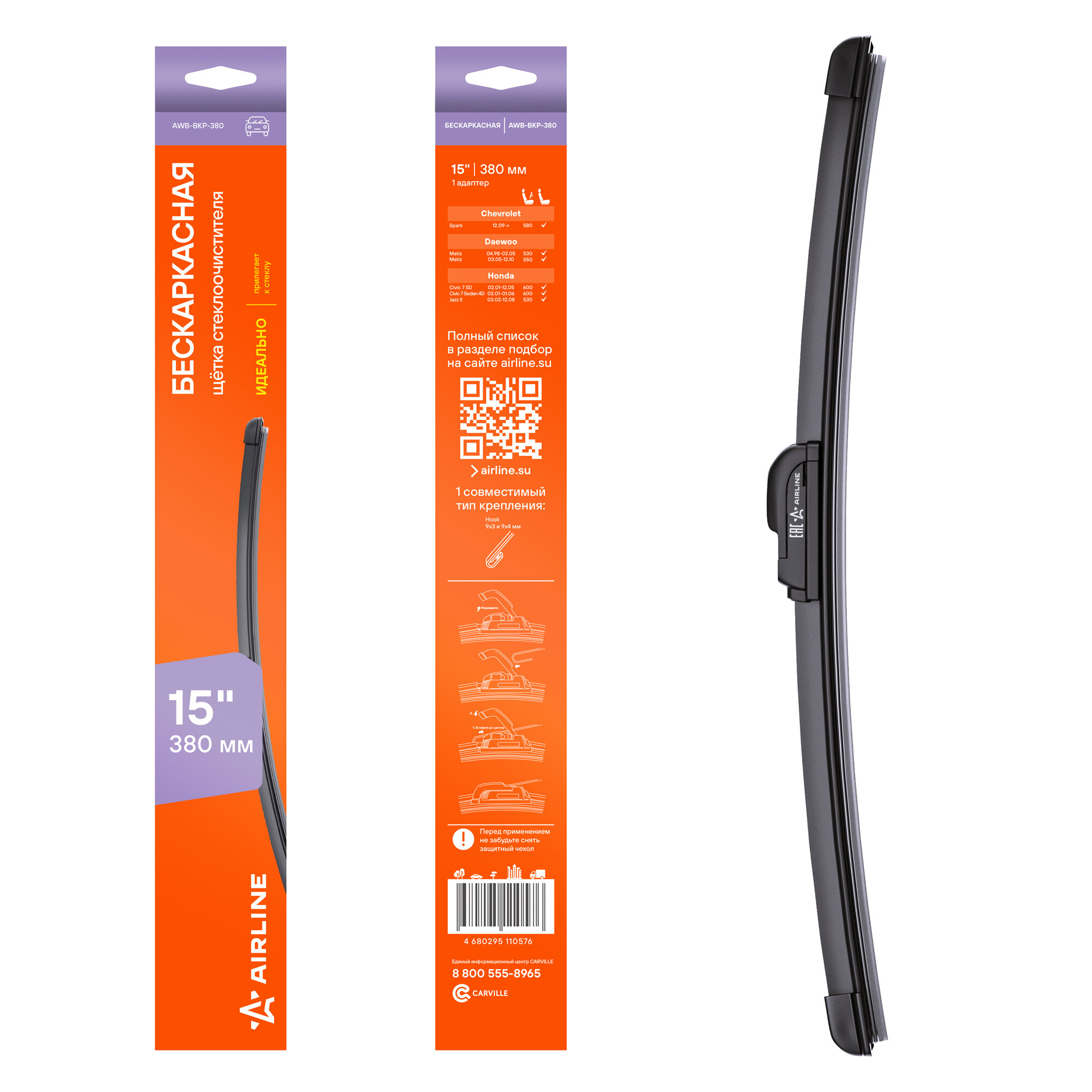 Отзывы на Щетка стеклоочистителя 380мм (15") бескаркасная, 1 адаптер (Hook 9x3, 9x4 mm - Крючок 9x3, 9x4 мм) AWB-BKP-380 AIRLINE