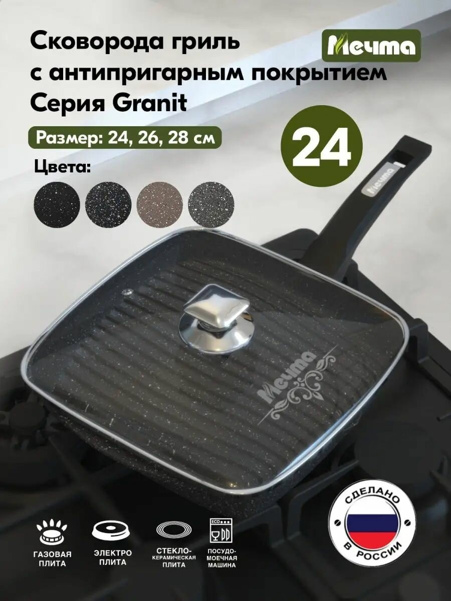 10 цен на Сковорода-гриль Мечта Гранит black (С64802), 24х24 см, крышка