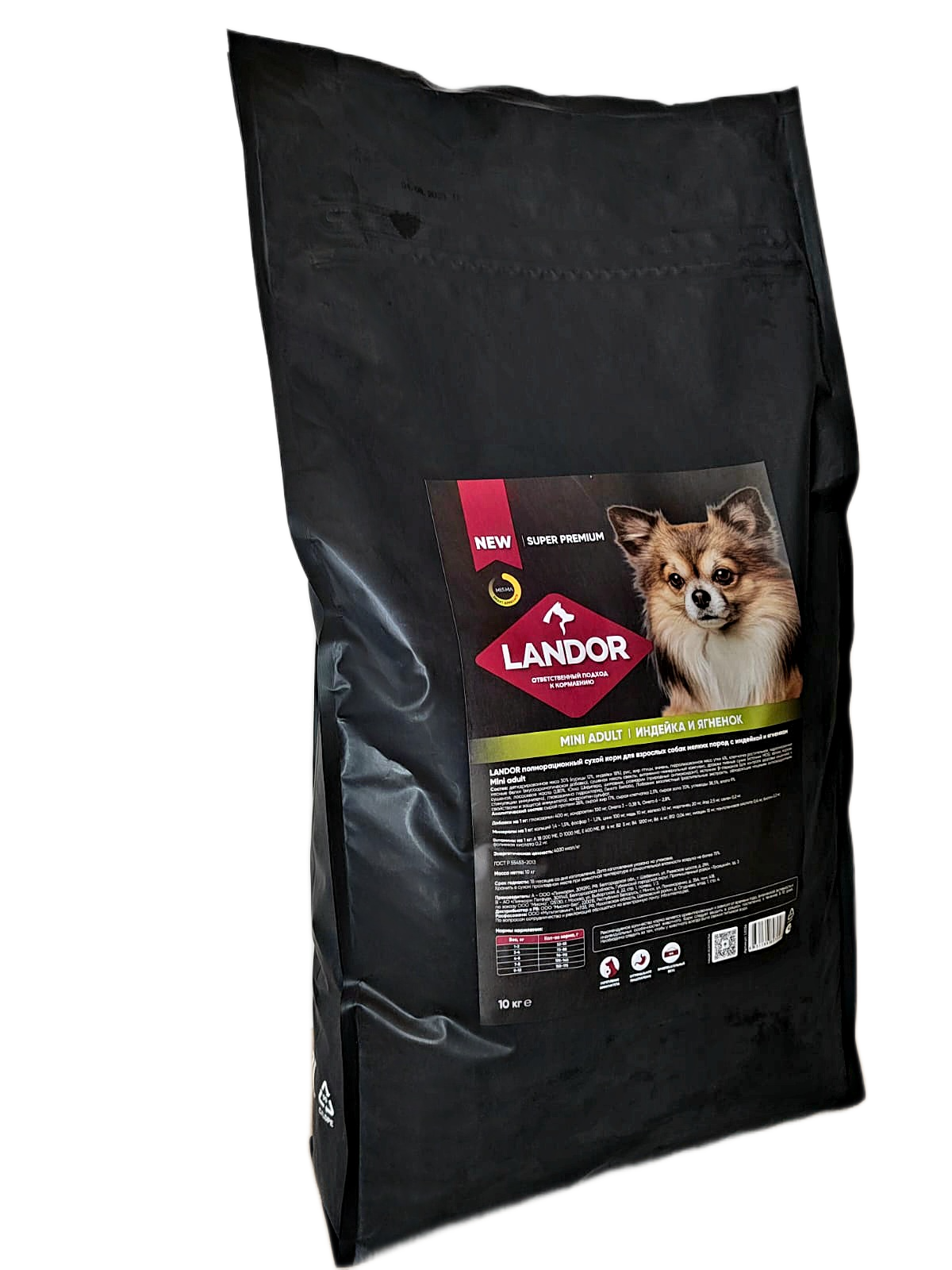Корм для собак сухой, для взрослых собак мелких пород Landor c индейкой и ягненком, 10 кг информация: