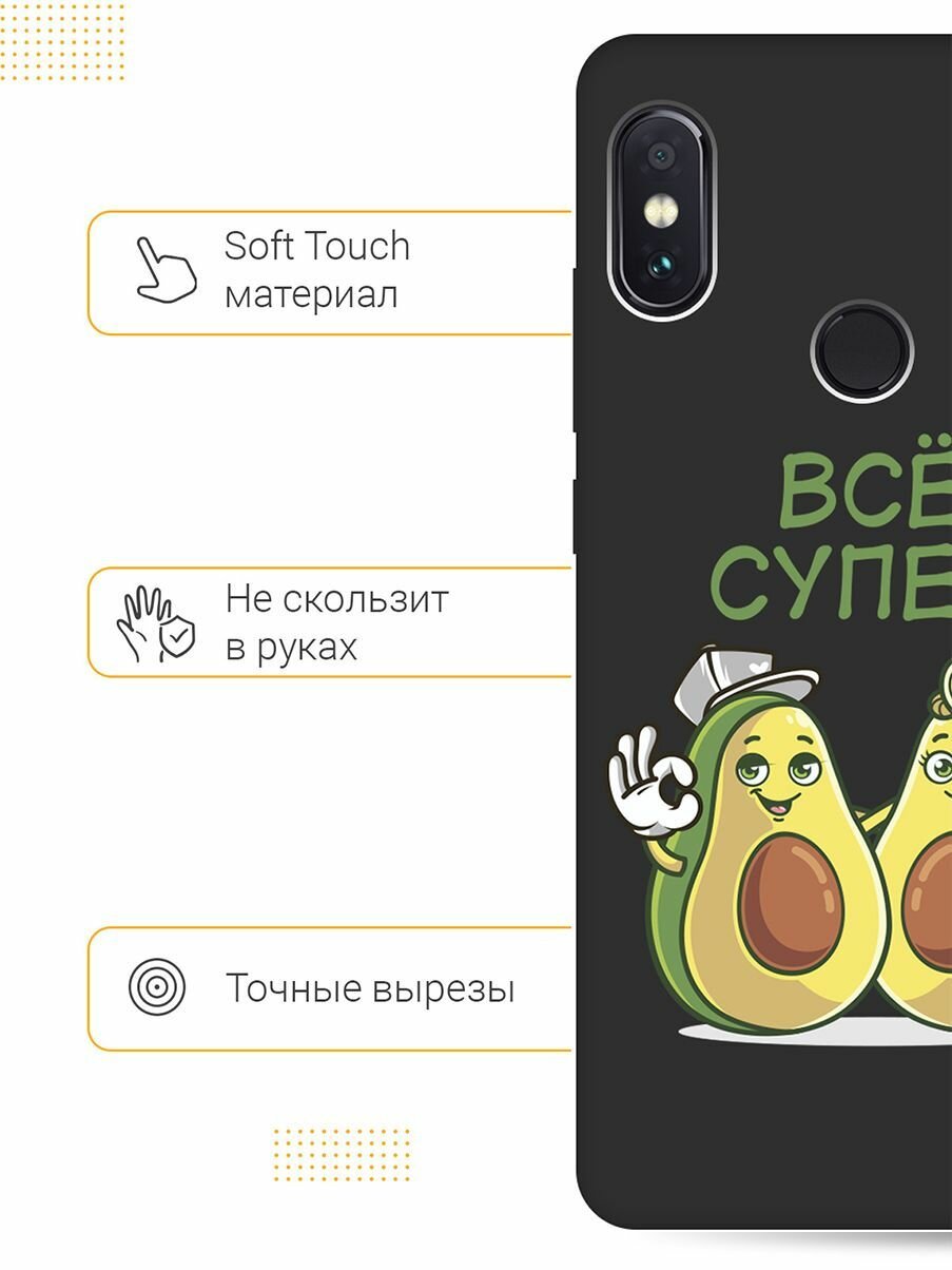 Отзывы на Матовый Soft Touch силиконовый чехол на Xiaomi Redmi Note 5, Note 5 Pro, Сяоми Редми Ноут 5, Ноут 5 Про с 3D принтом "Funny Avocado" черный