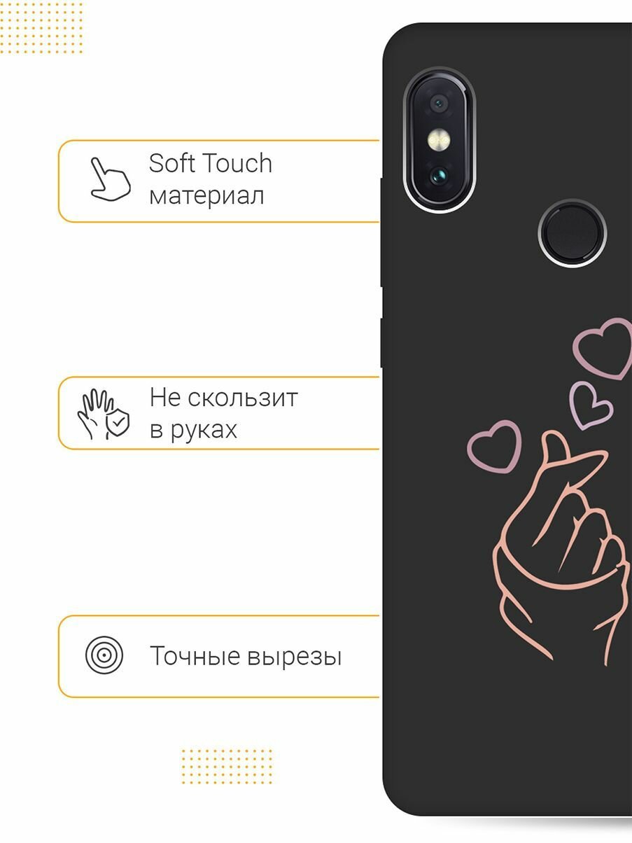 Отзывы на Матовый Soft Touch силиконовый чехол на Xiaomi Redmi Note 5, Note 5 Pro, Сяоми Редми Ноут 5, Ноут 5 Про с 3D принтом "K-Heart" черный