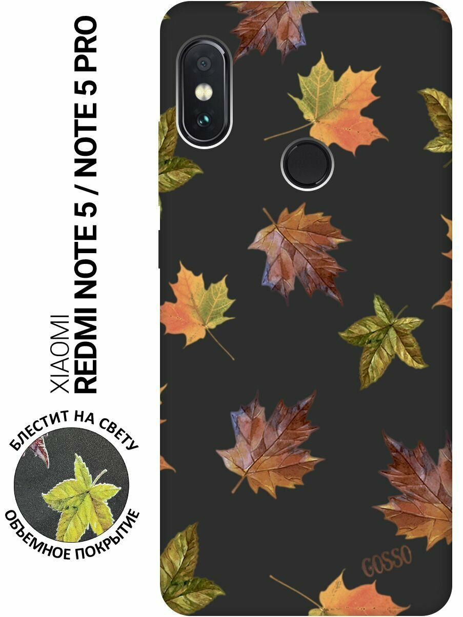 Матовый Soft Touch силиконовый чехол на Xiaomi Redmi Note 5 / Note 5 Pro / Сяоми Редми Ноут 5 / Ноут 5 Про с 3D принтом "Maple" черный 401 ₽
