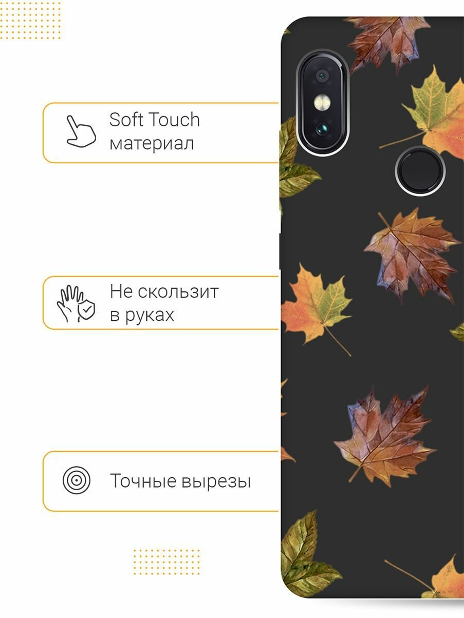 Отзывы на Матовый Soft Touch силиконовый чехол на Xiaomi Redmi Note 5, Note 5 Pro, Сяоми Редми Ноут 5, Ноут 5 Про с 3D принтом "Maple" черный