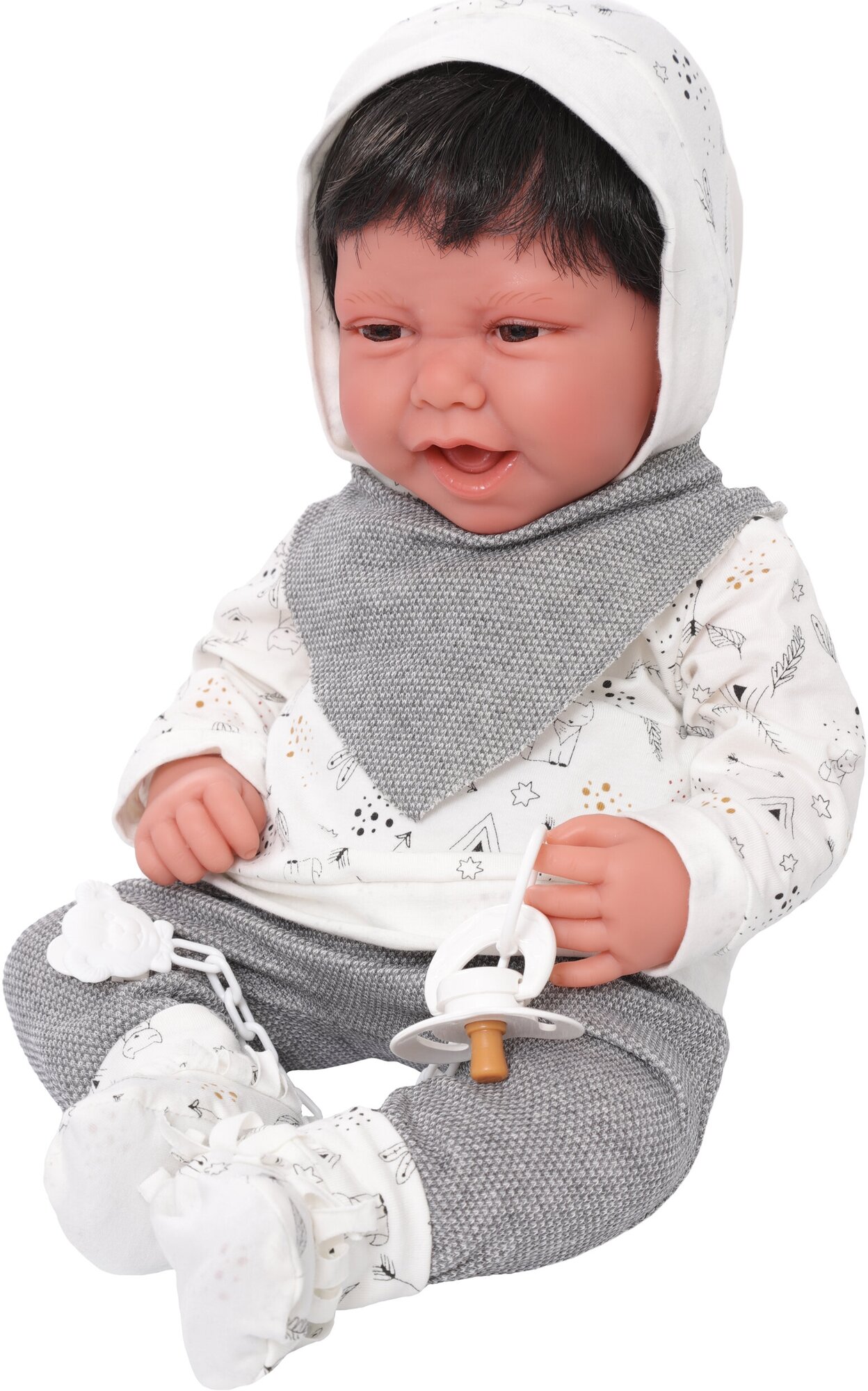 | Комплектация | кукла, шапка, слюнявчик, кофта, штанишки, носки, соска |