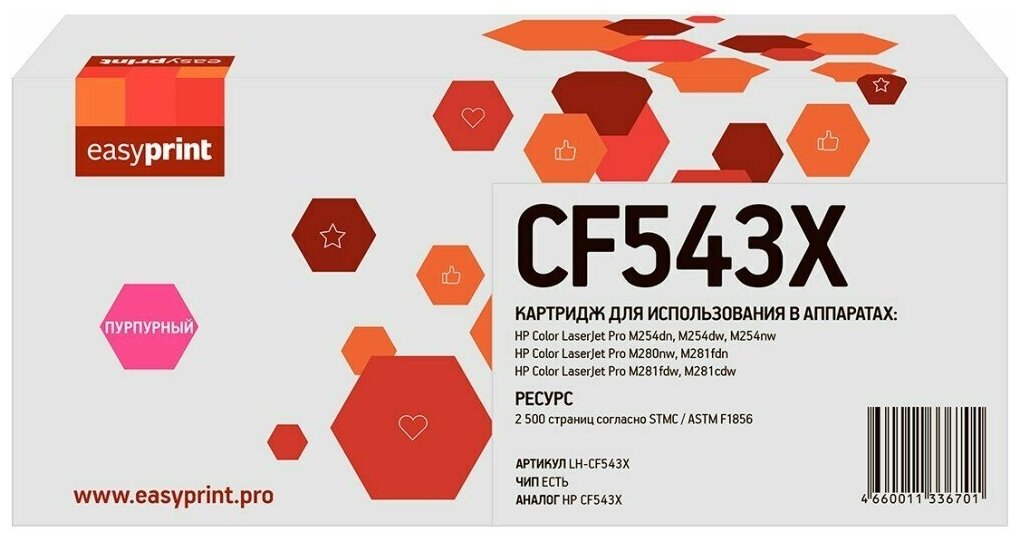 Easyprint Cf543x Картридж Lh-cf543x для HP Color LaserJet Pro M254/M280/M281 (2500 стр.) пурпурный,
