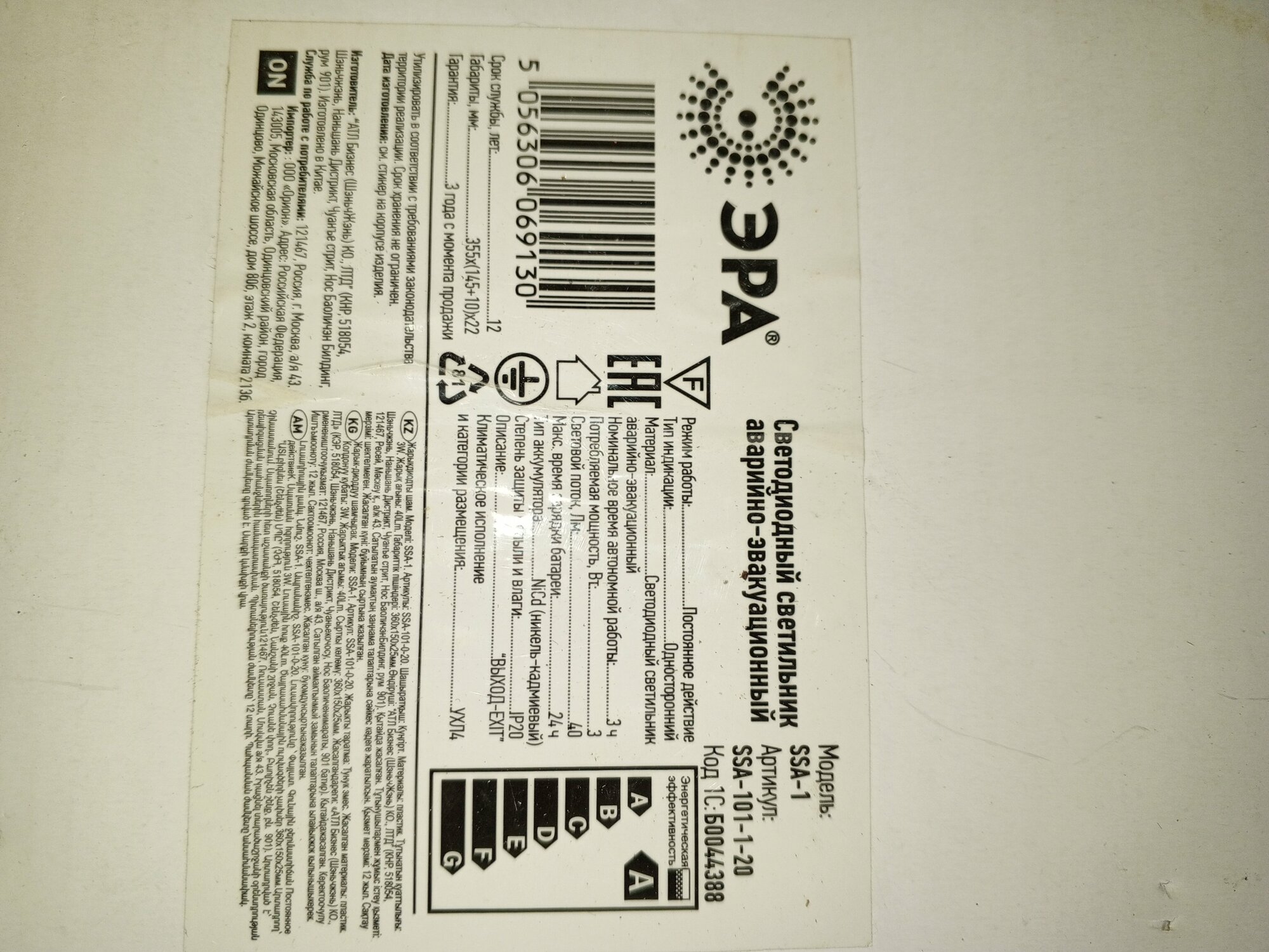 Аварийный светодиодный светильник ЭРА SSA101120 информация: