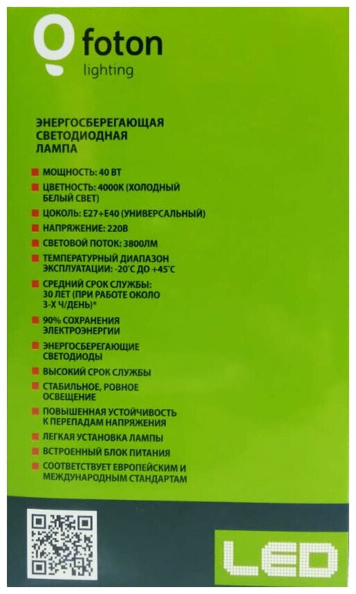 Отзывы на Лампа светодиодная Foton Lighting Бочонок HB 40Вт 3800Лм Е27+Е40 Промышленная Лампа высокой мощности Нейтральный белый, уп. 5шт