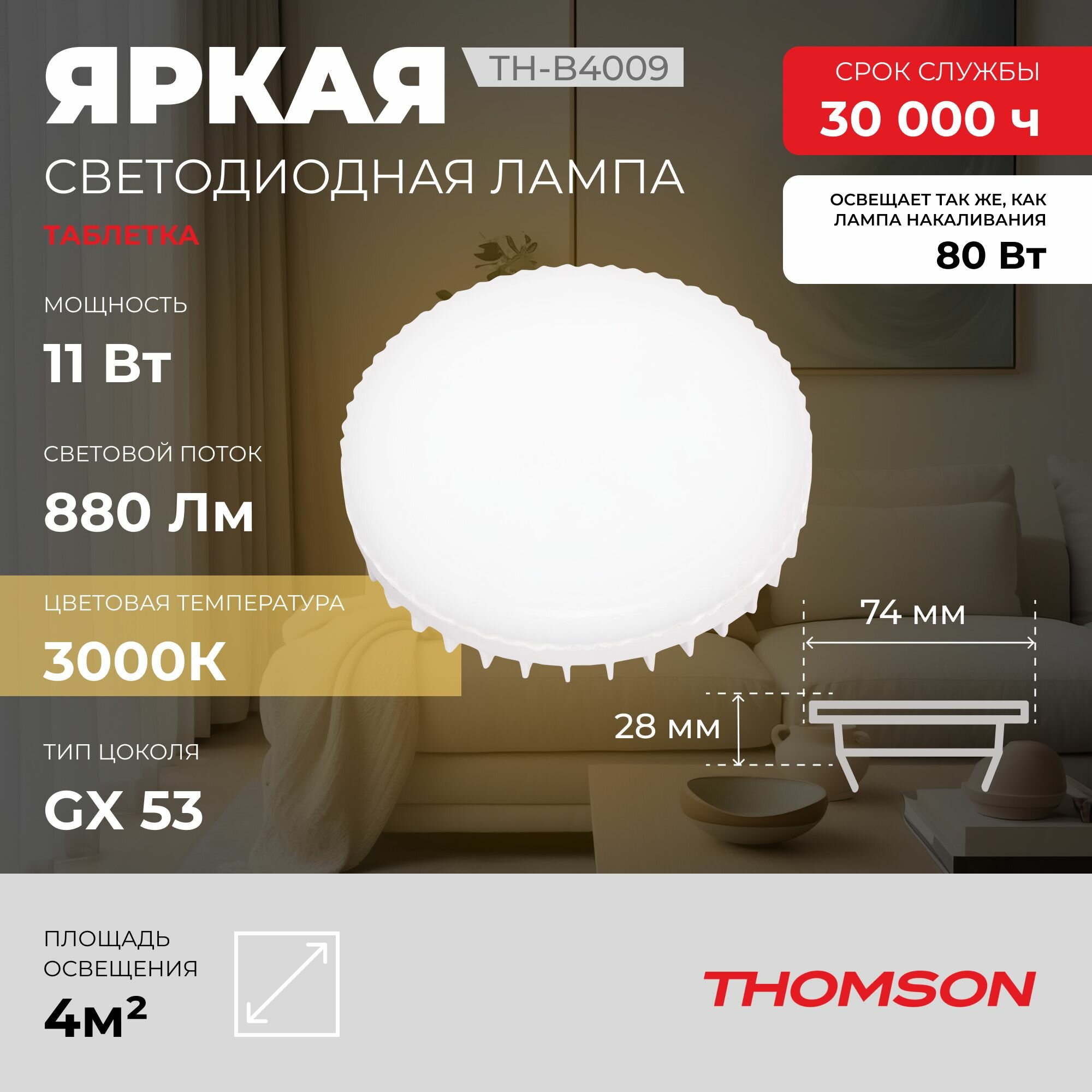 Лампа LED Thomson GX53, таблетка, 11Вт, TH-B4009, одна шт. информация: