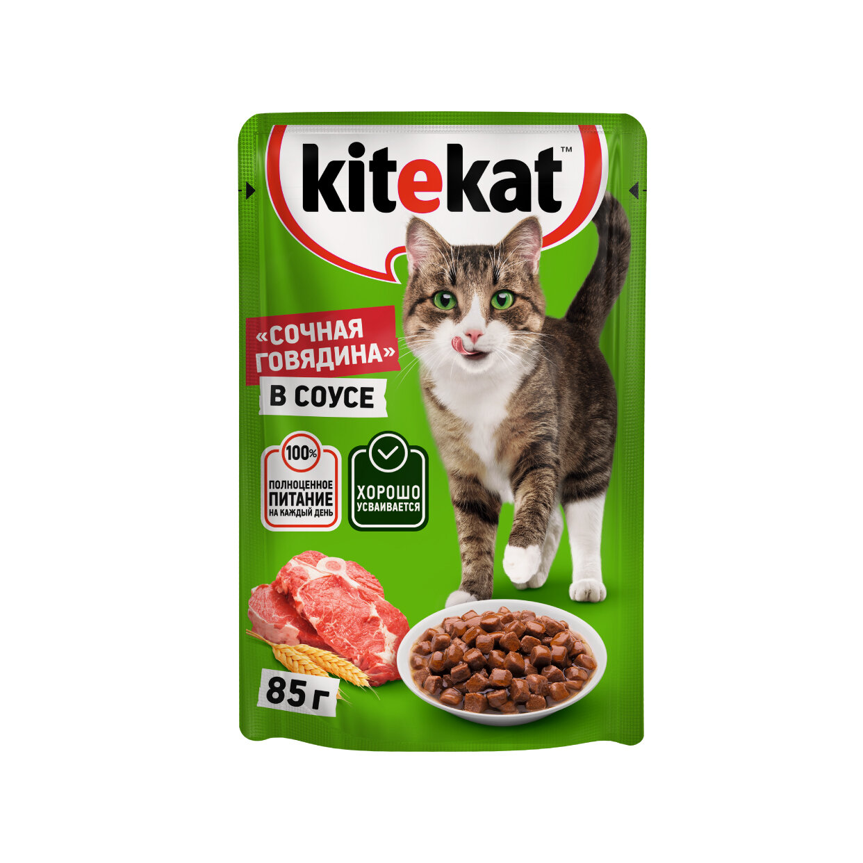 Влажный корм KiteKat для кошек сочная говядина в соусе 85г информация: