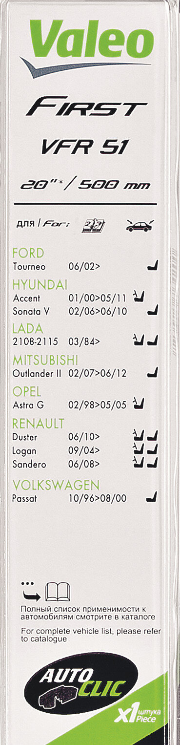VALEO 675550 VL675550_щетка! 500/20' универс. (VF)\ Audi, Fiat, Ford, Honda, Kia,Mazda, MB,Opel,VW 6 160 ₽