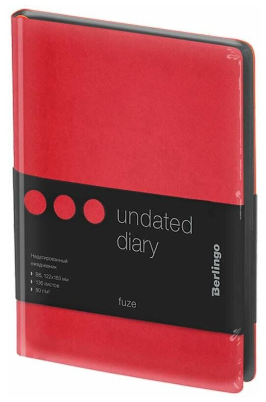 Ежедневник недатированный Berlingo B6, 136 листов, кожзам, "Fuze", цветной срез, красный (UD0_87608)