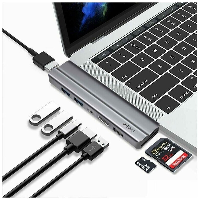 Отзывы на Хаб USB Wiwu T9 2xType C - 2xHDMI / 2xUSB 3.0 / USB 2.0 Grey 6957815514984