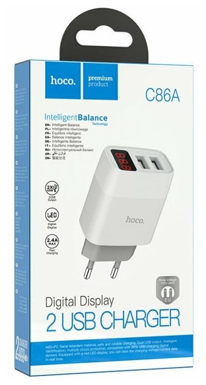 Зарядное устройство HOCO C86A Illustrious 2/USB, 2.4A, белый, с дисплеем информация: