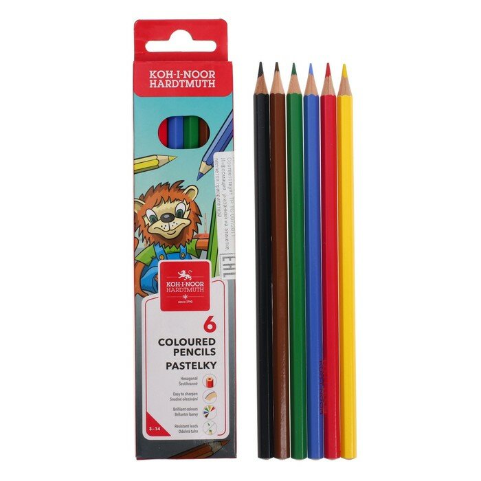 Карандаши цветные KOH-I-NOOR "Lion", 6 цветов, заточенные, картон, европодвес (3551006034KS)