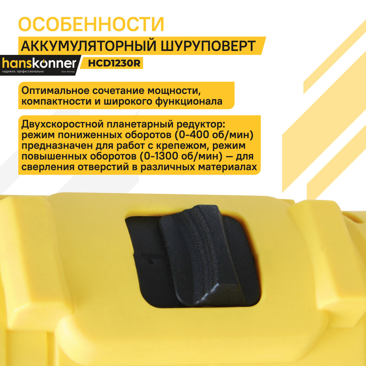 Аккуумляторная дрель-шуруповёрт Hanskonner HCD1230R