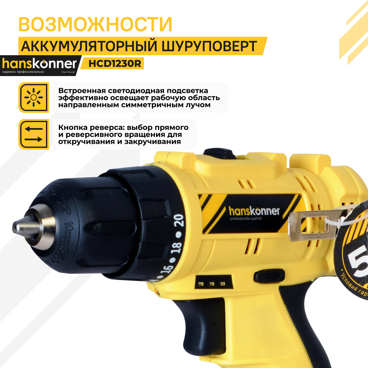 Аккумуляторный шуруповерт Hanskonner HCD1230R информация: