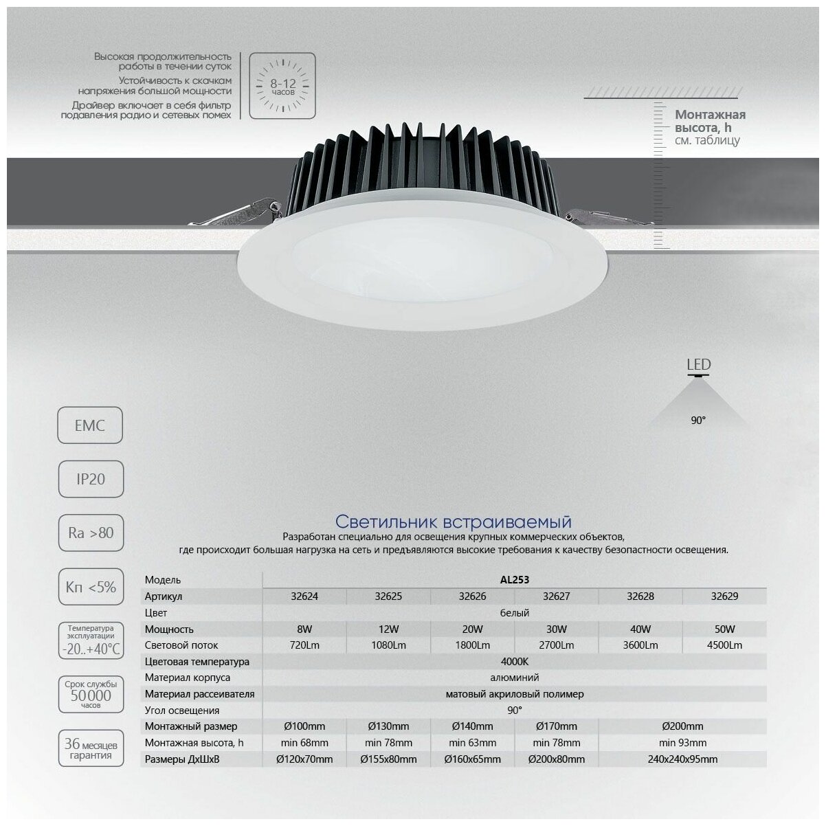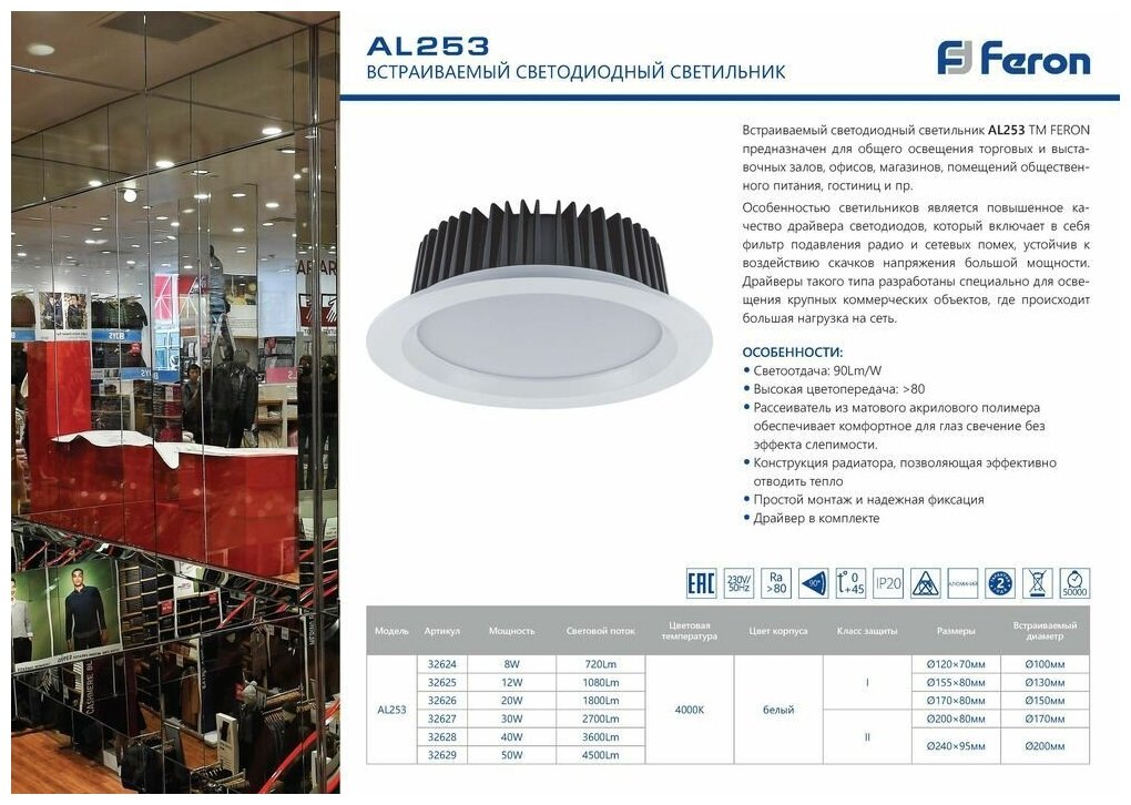 Отзывы на Светодиодный светильник Feron AL253 встраиваемый 30W 4000K белый серия MarketBright (32627)