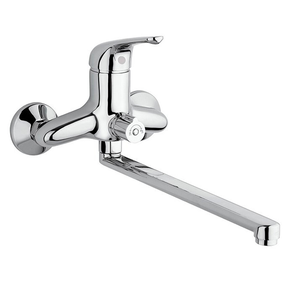 Смеситель на раковину настенный Эверест B46-350 с круглым поворотным изливом, кран-буксы 1/2", хром