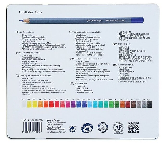 Карандаши акварельные художественные Faber-castell "Goldfaber Aqua", 24 цвета, метал. коробка информация: