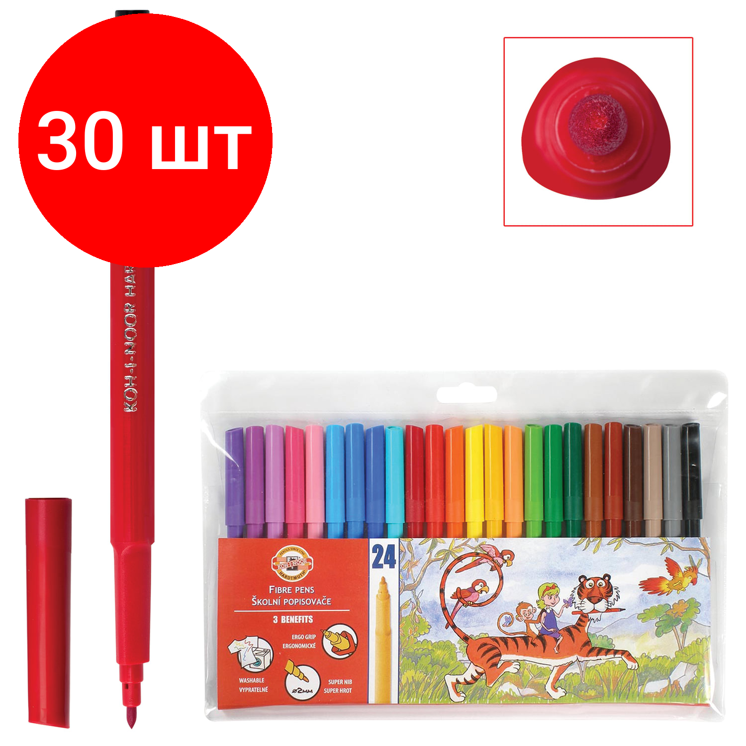 KOH-I-NOOR Фломастеры koh-i-noor, 30 цветов, смываемые, трехгранные, пластиковая упаковка, европодвес, 771002cj04teru