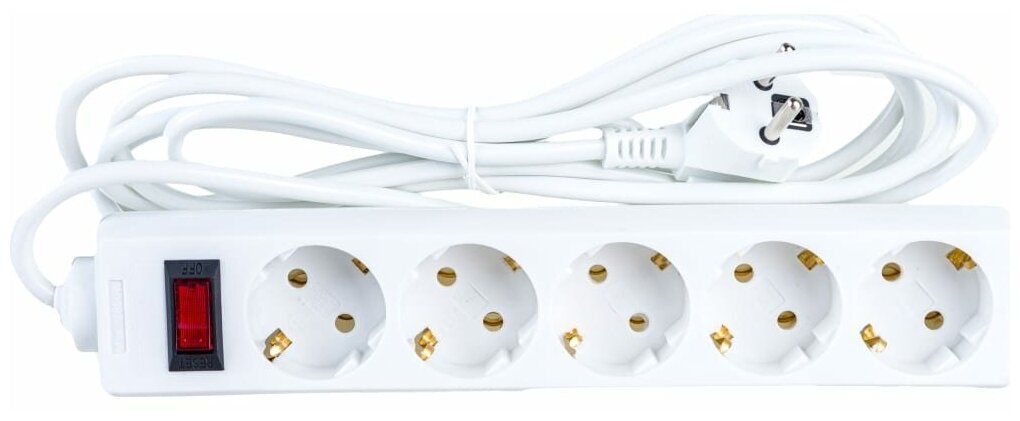 Сетевой фильтр ExeGate SP-5-5W 5евро с заземлением, 5м, выключатель с подсветкой, белый 221190
