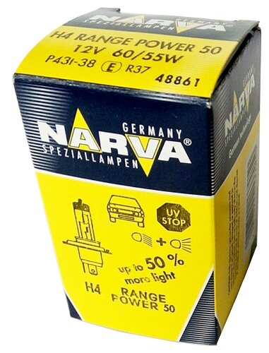 Отзывы на Лампа H4 Range Power 50+ 12V 60/55W P43t 38 NVA (упаковка Carton Box 1 шт)