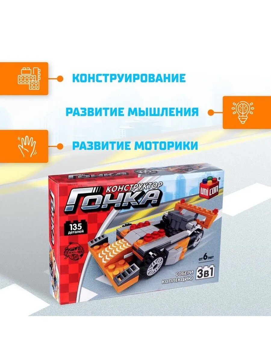 Конструктор гоночная машина 3 в 1 UNICON Гонка, 135 деталей, 6+ информация: