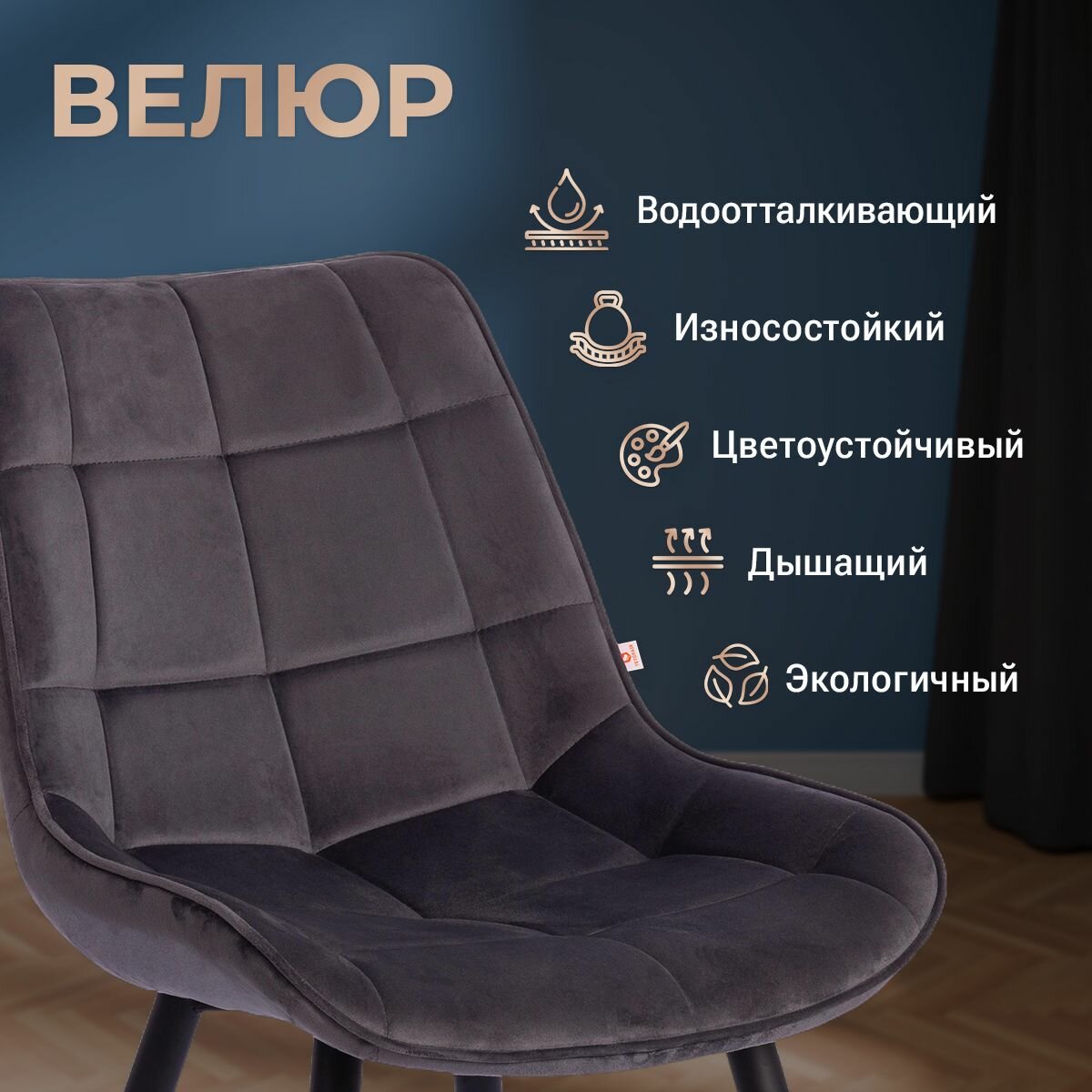 Стул обеденный TetChair ABRUZZO серый вельвет, ножки металл черный, T-15556 8 072 ₽