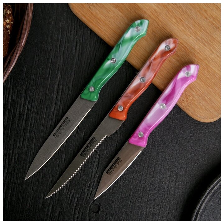 10 цен на Набор кухонных ножей «Универсал», 3 шт: ножи: 8 см, 12 см, 13 см, цвет микс