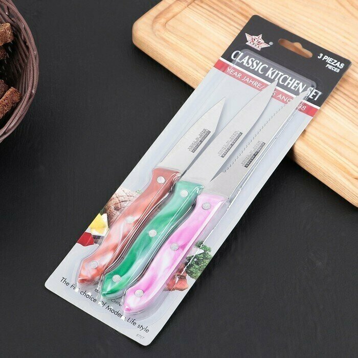 Набор кухонных ножей «Универсал», 3 шт: ножи: 8 см, 12 см, 13 см, цвет микс информация: