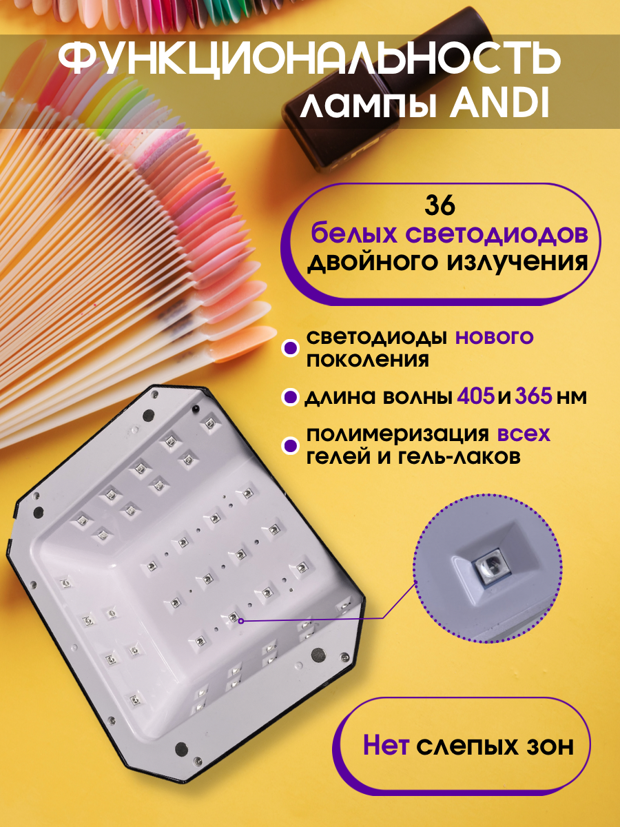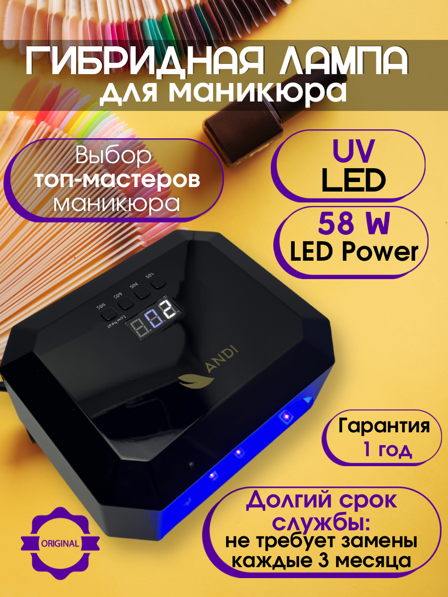 ANDI Лампа маникюрная для сушки ногтей Powerful X5 58W с дисплеем и таймером, черная информация: