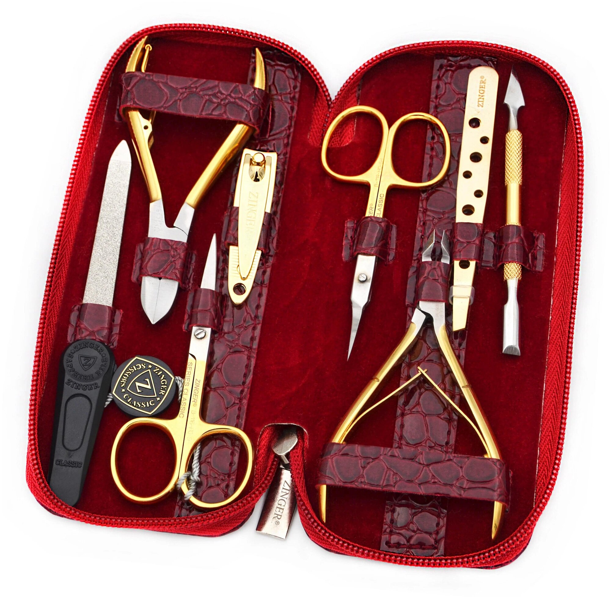 10 цен на Маникюрный набор Zinger 7106 G, 8 предметов, позолоченный/темно-красный