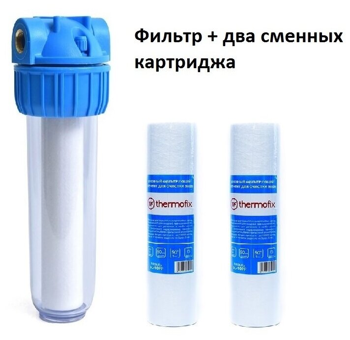Фильтр для воды "Thermofix" (1/2" колба с гайкой, 10", с картриджем) (+2 картриджа полипропилен,10 мкн) Slim Line информация: