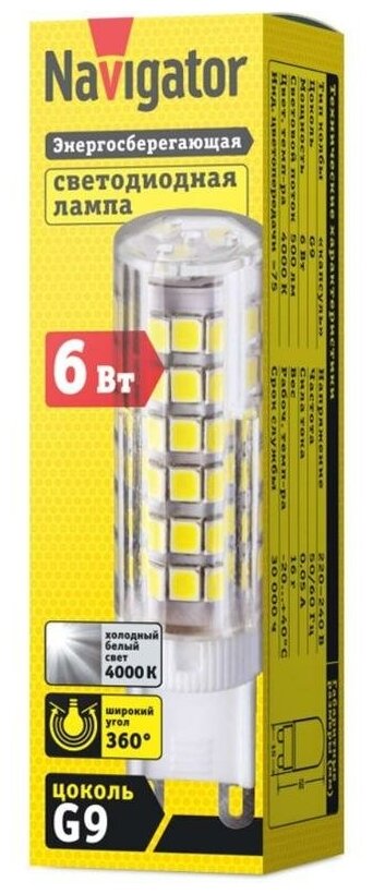 (2 шт.) Светодиодная лампочка Navigator пластик G9 6Вт 230В 4000K информация: