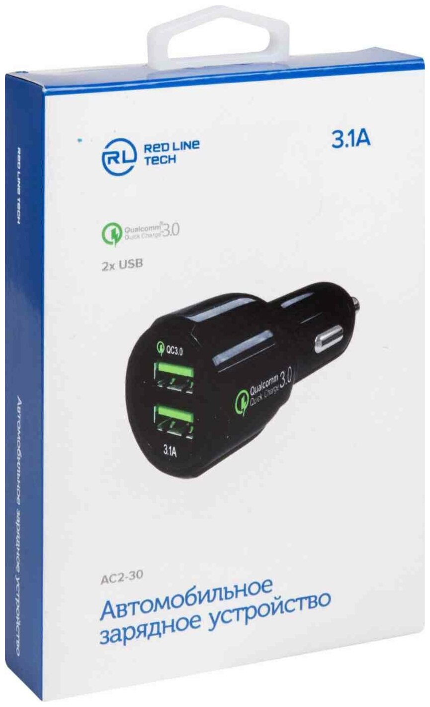Автомобильное зарядное устройство Red Line Tech 2 USB (модель AC2-30), Quick Charge 3.0, черный