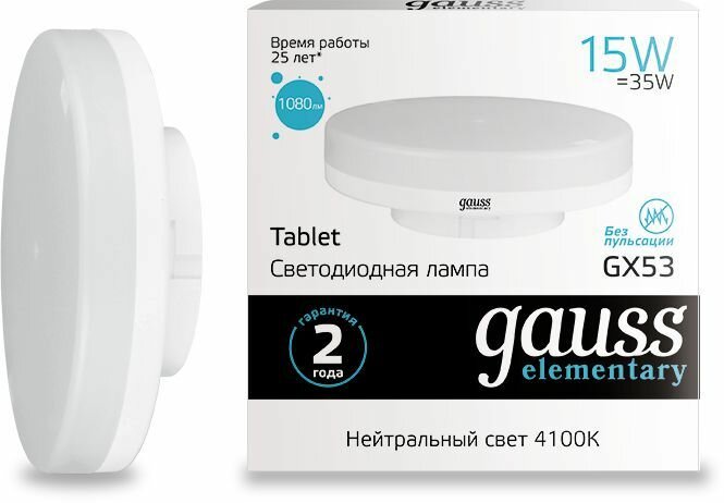 Лампочка светодиодная GX53 15W нейтральный белый свет 4100K упаковка 10 шт. Gauss Elementary 3 768 ₽