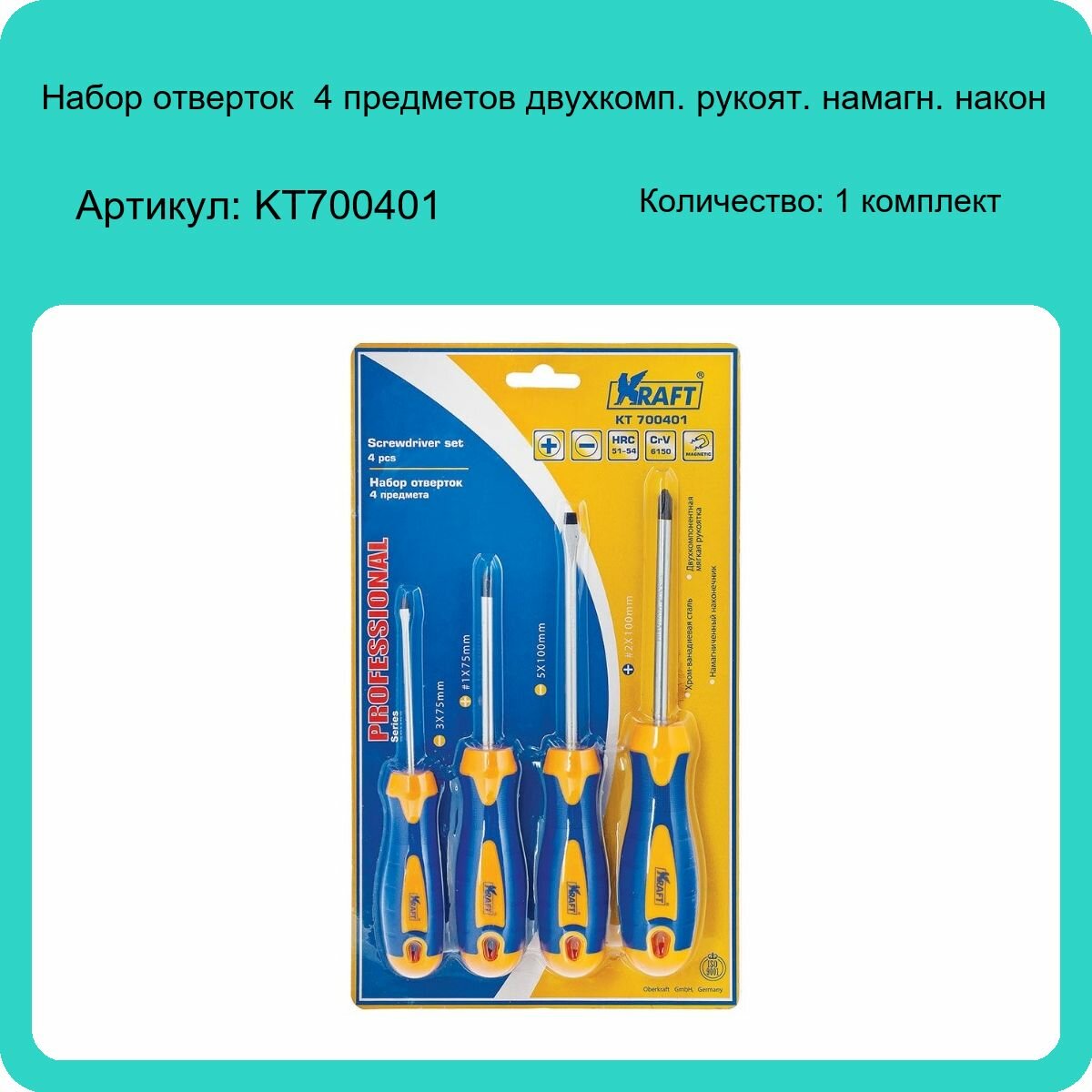 KRAFT KT700401 набор отверток 4 шт. (cr-v двухкомп. рукоят намагн. након)