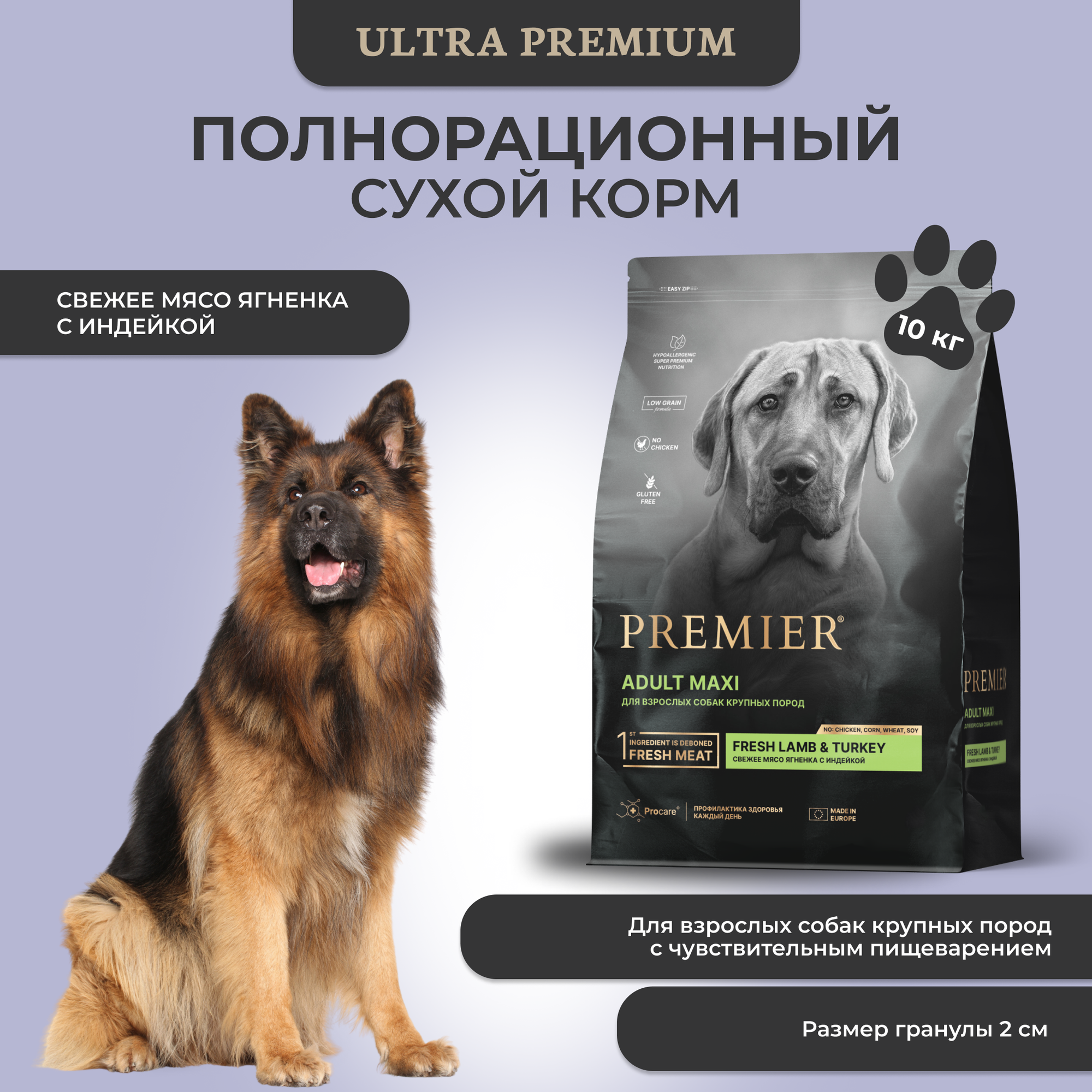 Premier Dog Lamb & Turkey Adult Maxi для собак крупных пород, свежее мясо ягненка с индейкой 3кг.