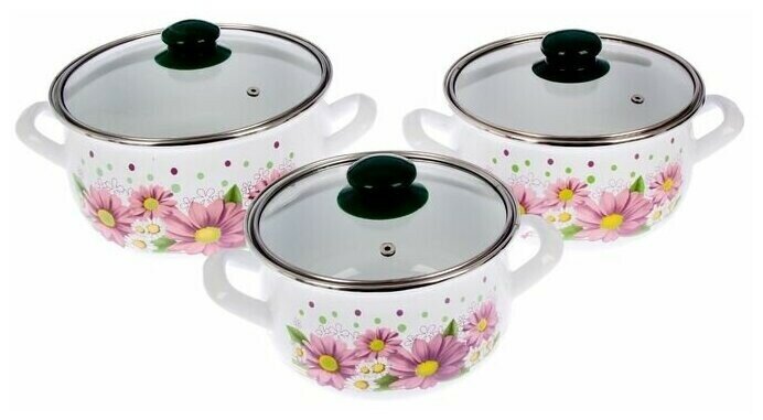 Набор кастрюль Сибирские товары Пионы, эмалированные, 2, 3 и 4 л