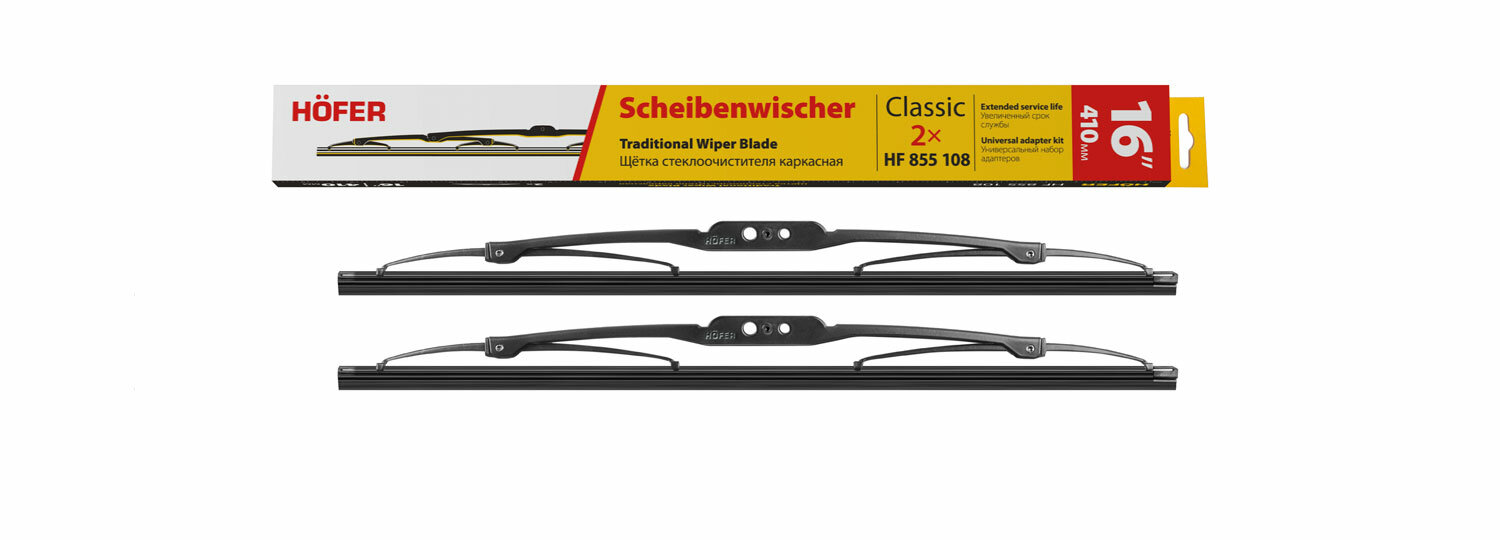 10 цен на HOFER HF855108 Щетки стеклоочистителя каркасные 410/410мм 2шт, 5 адаптеров