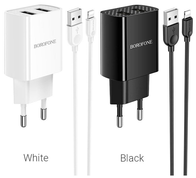 Borofone Сетевое зарядное устройство Borofone BA53A, 2xUSB, 2.1 А, чёрное