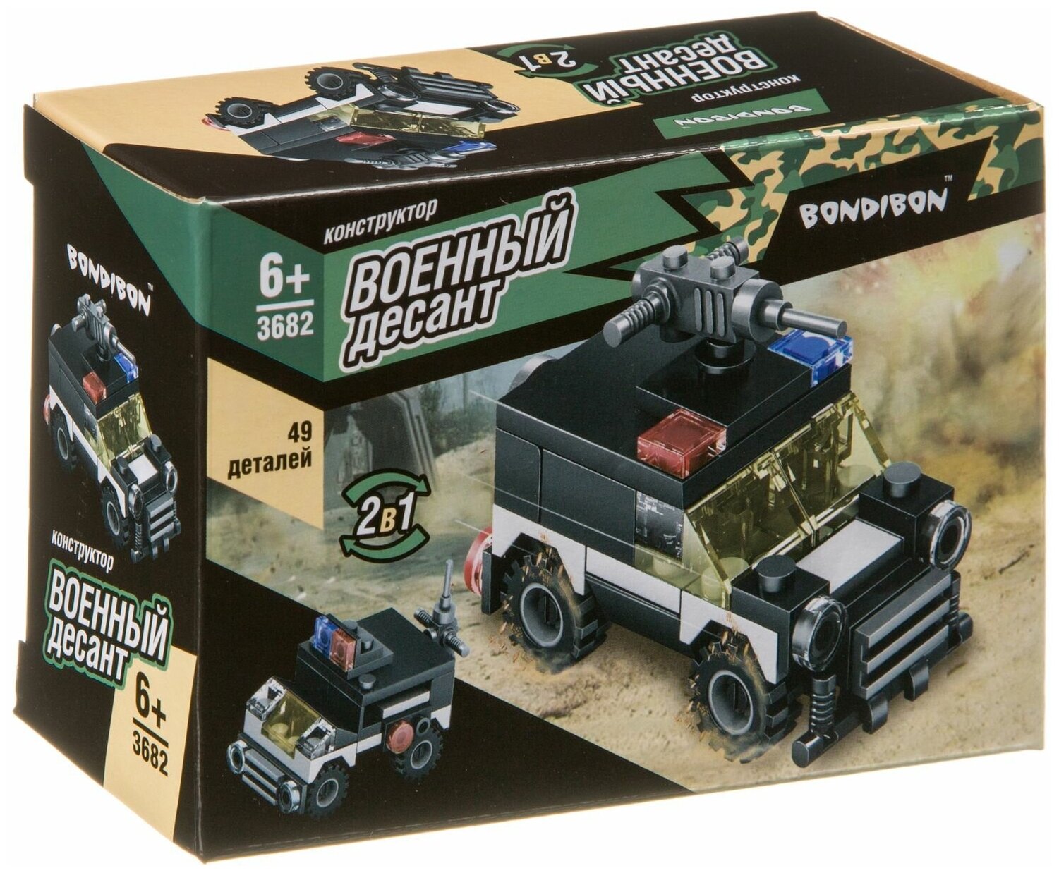 10 цен на Конструктор 6+. 49 деталей "Военный десант, машина" пластиковый