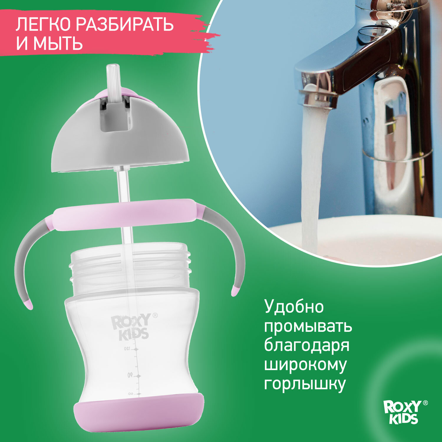 10 цен на Поильник-непроливайка ROXY-KIDS с трубочкой 200 мл, цвет серо-лавандовый
