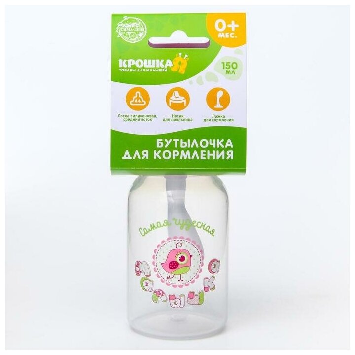 10 цен на Бутылочка для кормления 3 в 1 "Чудесная малышка", в комплекте ложка и носик-поильник, 150 мл, от 0 мес., цвет розовый