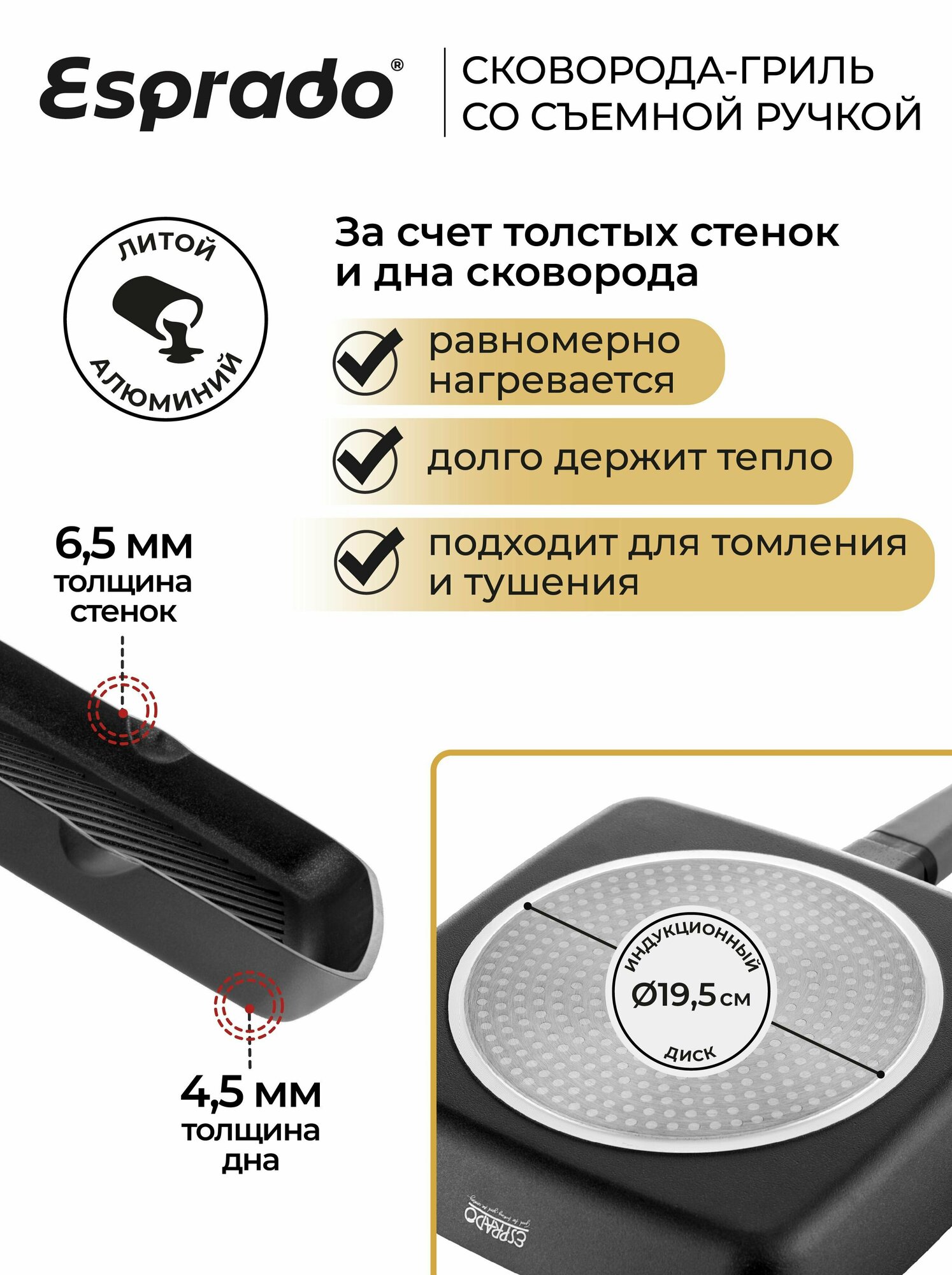 Сковорода-гриль ESPRADO Carne, индукция, 28 см, со съемной ручкой