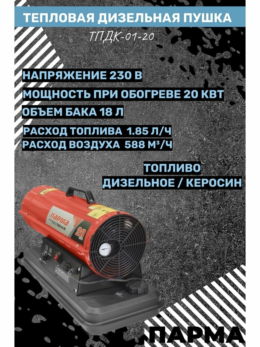 Тепловая пушка дизельная Парма ТПДК-01-20 оранжевый информация: