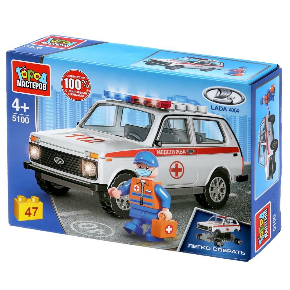 Конструктор LADA 4X4 скорая помощь серия спецтехника с фигуркой 47 деталей город мастеров 5100-CY